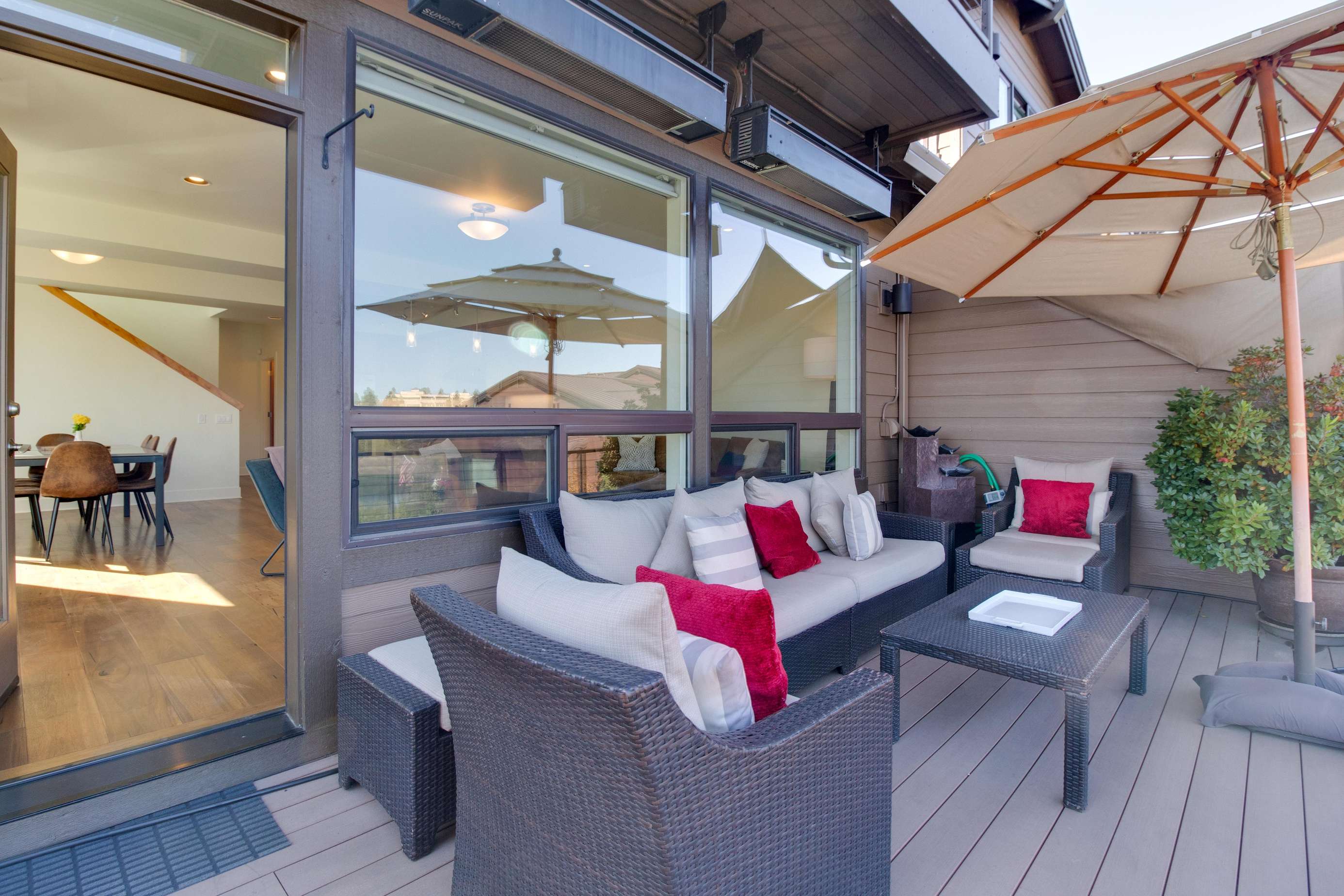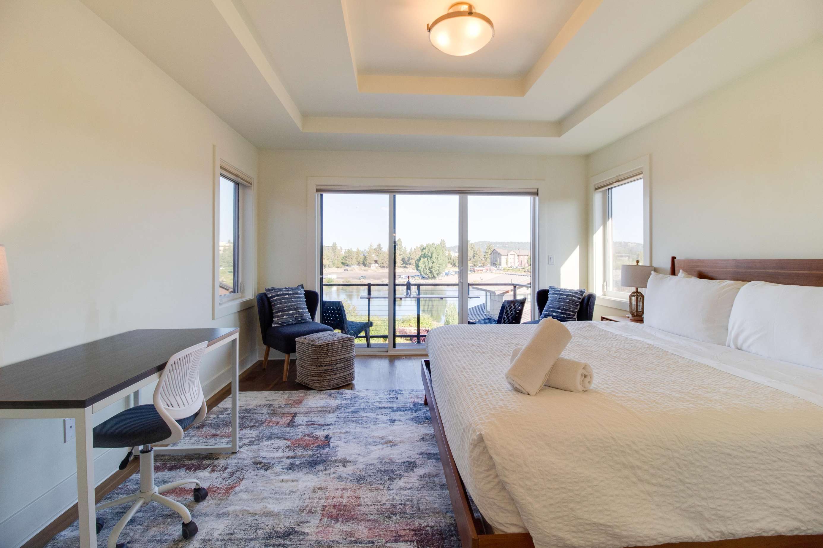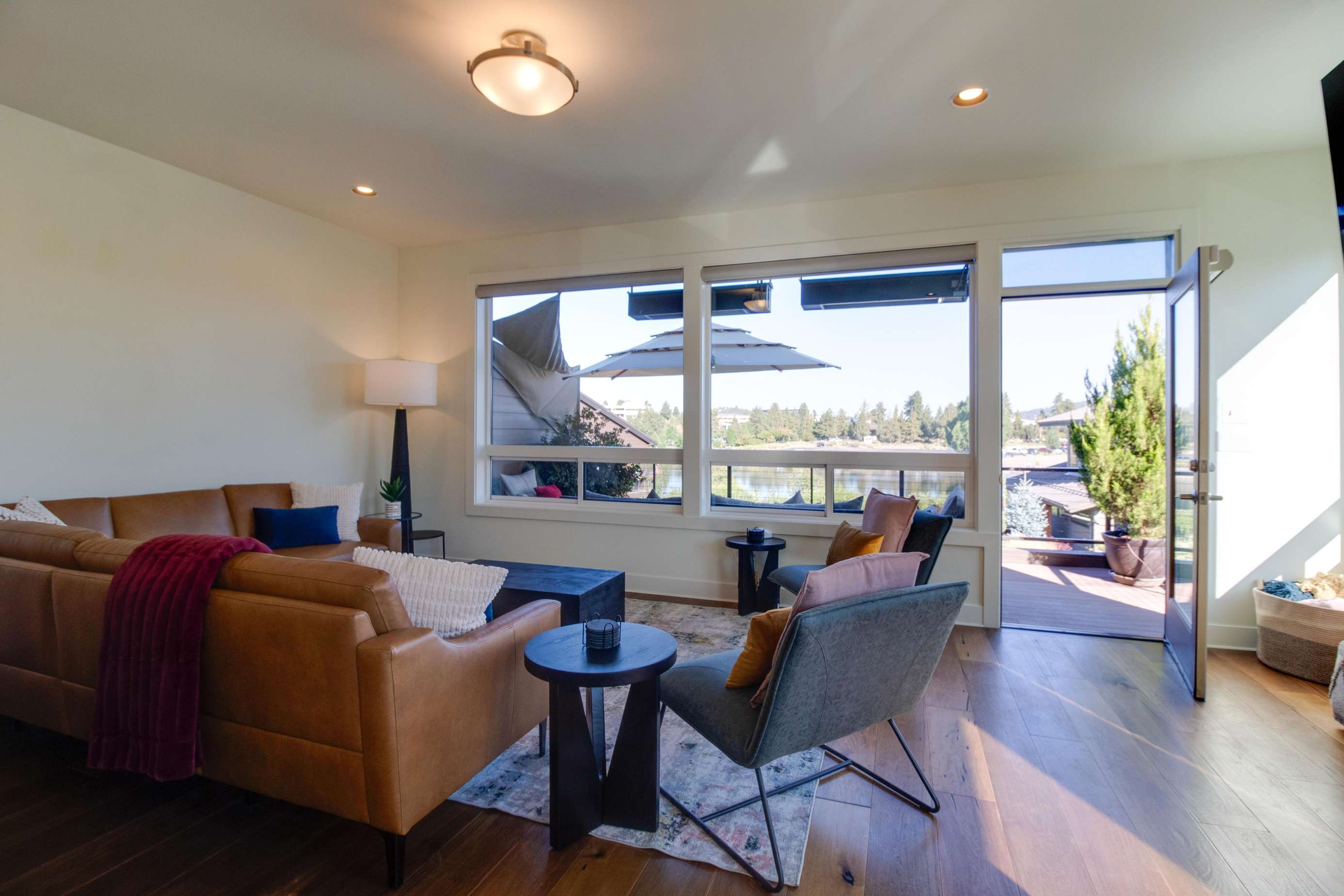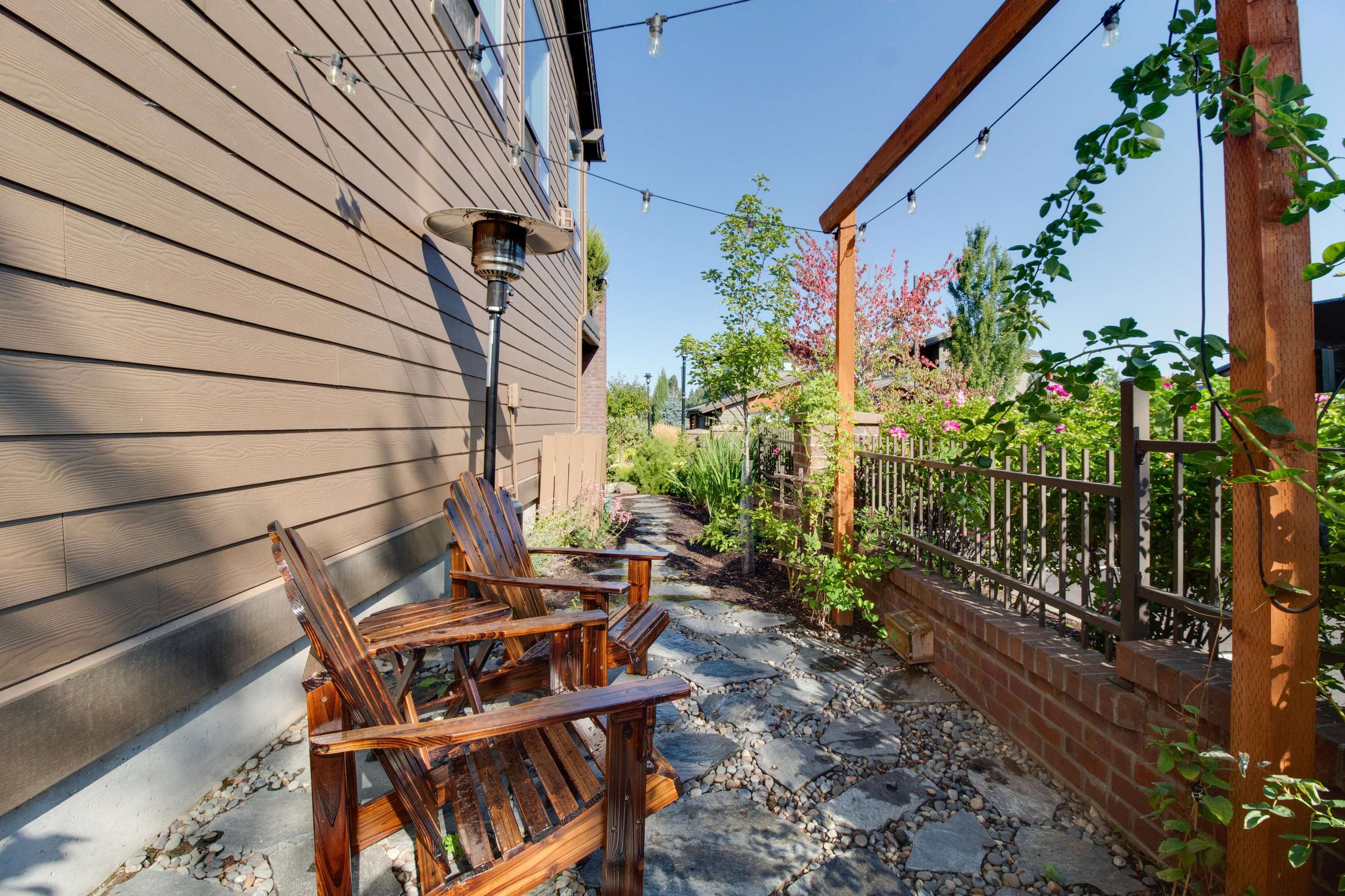 Who needs a yard when the Deschutes River is your backyard? The main balcony overlooks the Deschutes River, the Old Mill and nearby parks and neighborhood. Infrared heaters on the main balcony allow everyone to enjoy the balcony even when it's brisk out. There is a small, quiet nook on the side of the home with a couple of Adirondack chairs and a propane heater if you want a small place to tuck away for a bit. Summer brings out all the river floaters and you'll enjoy an endless day of people watching. In quieter seasons, the river residents are birds, otters and other natural wildlife. On occasion, beautiful ice floes build up on the river banks in winter