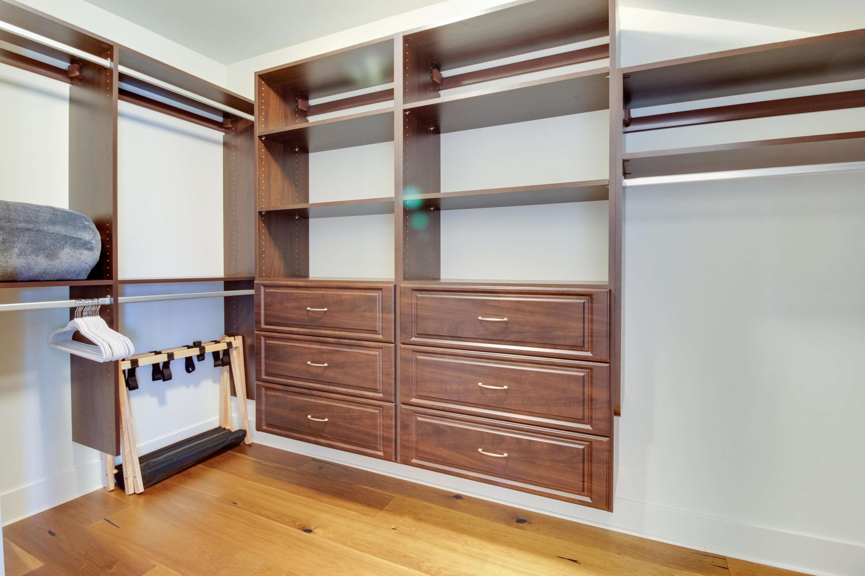 The 3rd king bedroom is on the main (2nd) floor king bedroom. This bedroom has 2 glass entry doors with window adjacent, so it can be light and bright, or pull the room darkening shades if you need a darker space. This room has enough room for a Pack & Play, if needed, and it's located in the closet. Of course, there is an ensuite bathroom and spacious closet in the bedroom too. This bedroom features a classic tub/shower combination.