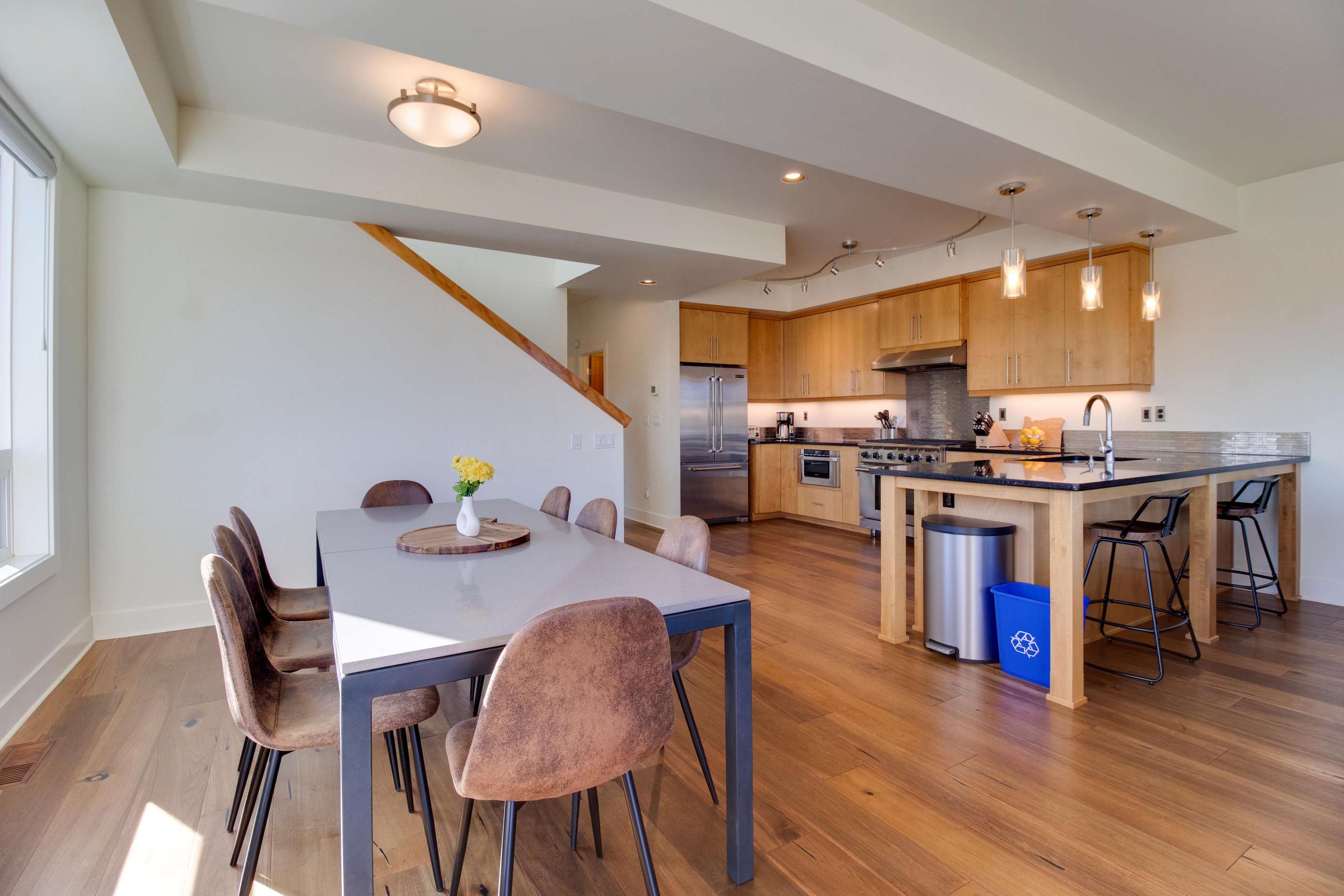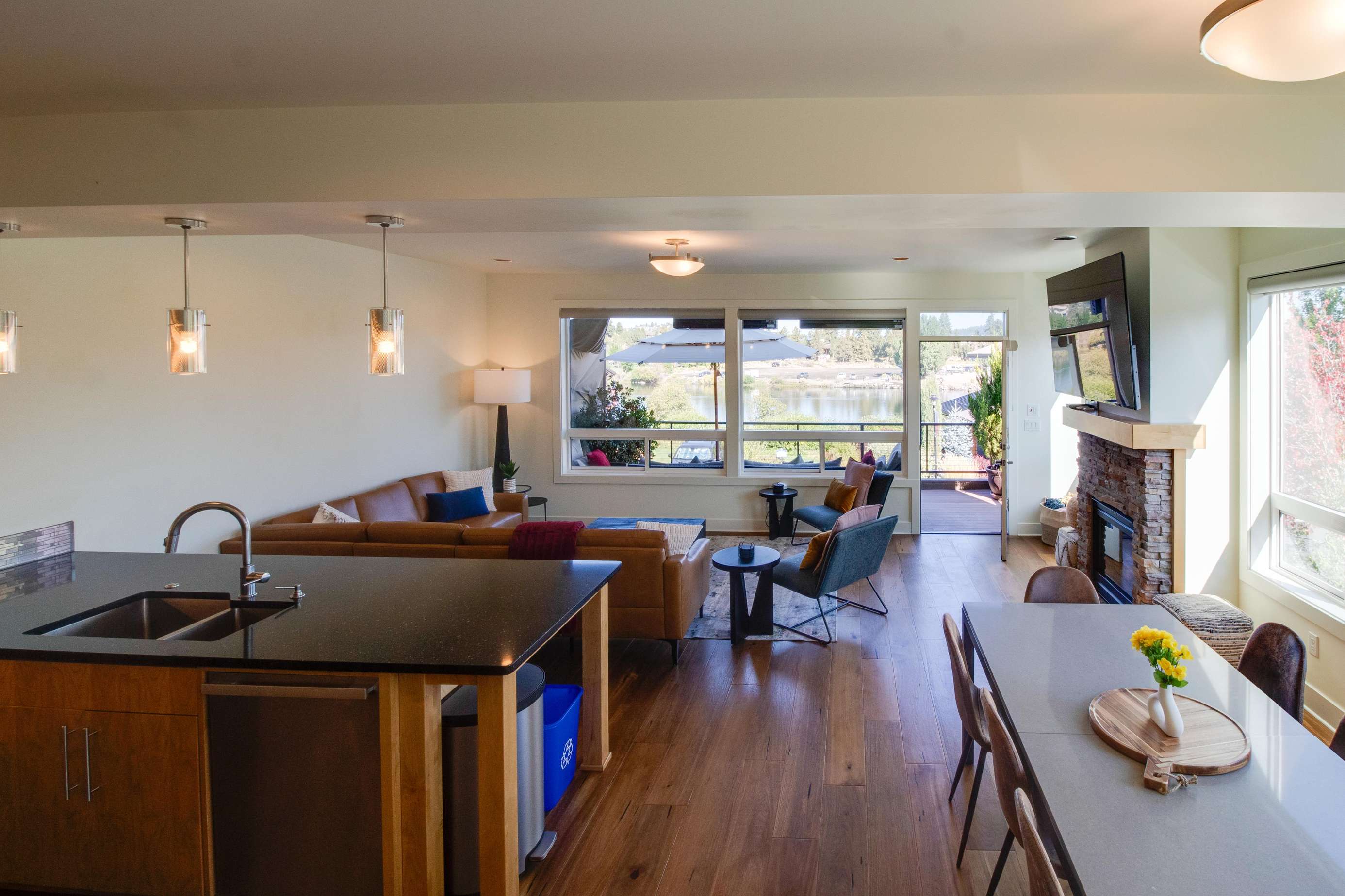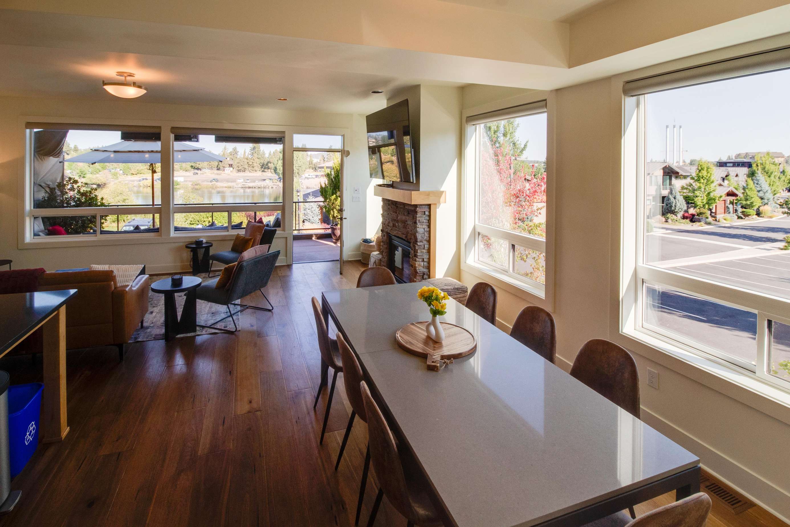 This 3 story, end unit townhome is perfectly placed in the Old Mill. Whether you come to relax and unwind or are looking to jump in the Deschutes and explore Bend, you'll find it here. The home is just a 5 minute walk to the Old Mill shopping district. Hayden Homes Amphitheater is a few minutes walk beyond. The Old Mill features a refreshing mix of local and larger businesses. Have local coffee at Sisters Coffee and pick up any last minute outdoor gear at nearby REI. See a movie, rent bikes, there is something for everyone in the Old Mill. River access from the home is about a minute walk away. Grab one of the 2 provided SUPS or walk over to Riverbend Park and rent river float tubes.