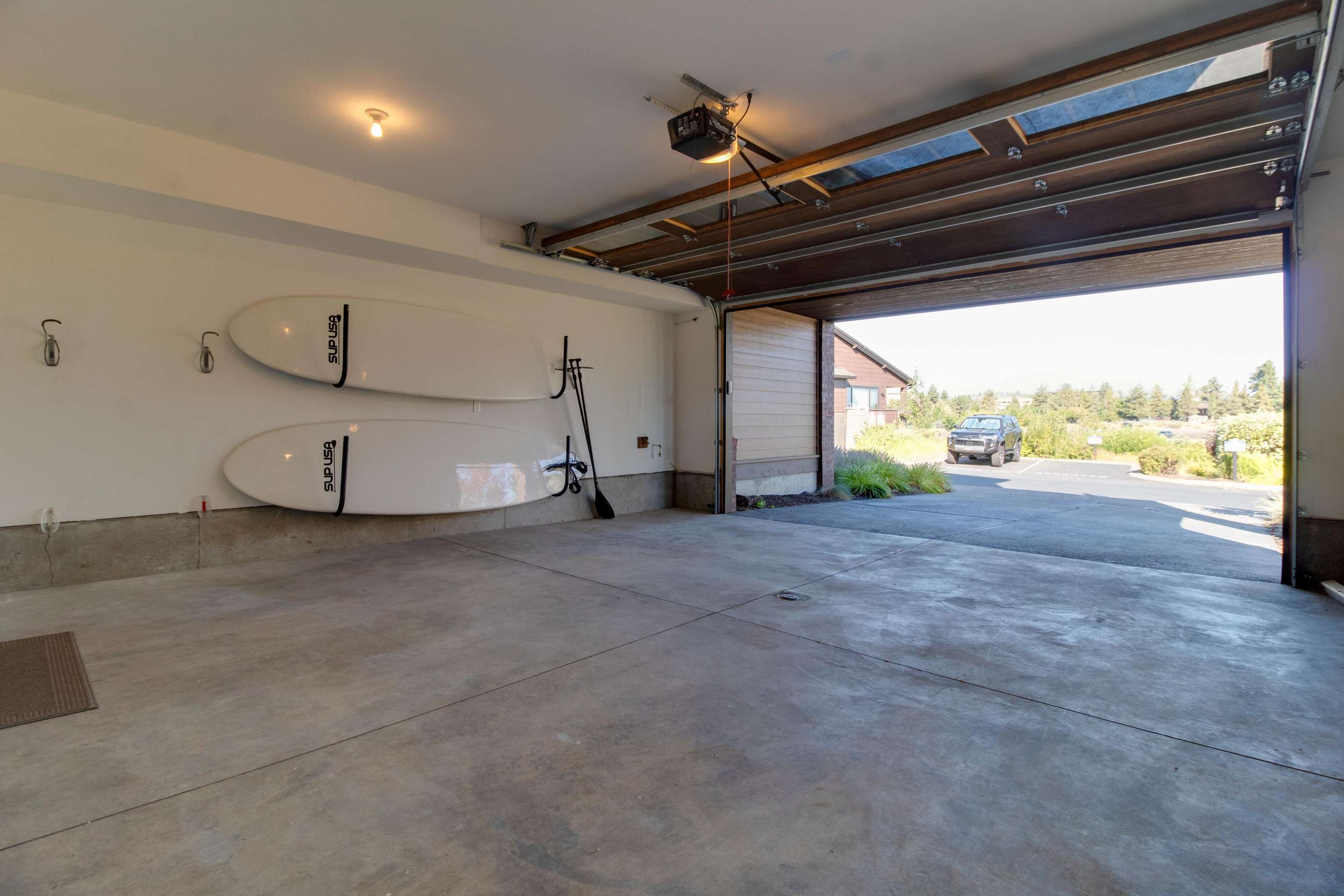 Free parking in the driveway of this home for 2 vehicles. There is additional room for 2 more in the garage with extra room for your skis, bikes and other gear. Please note the balcony partially extends over the driveway so some over height vehicles may need to park down the street. Camper vans that fit in a standard parking space may park in the driveway. There is no RV parking.