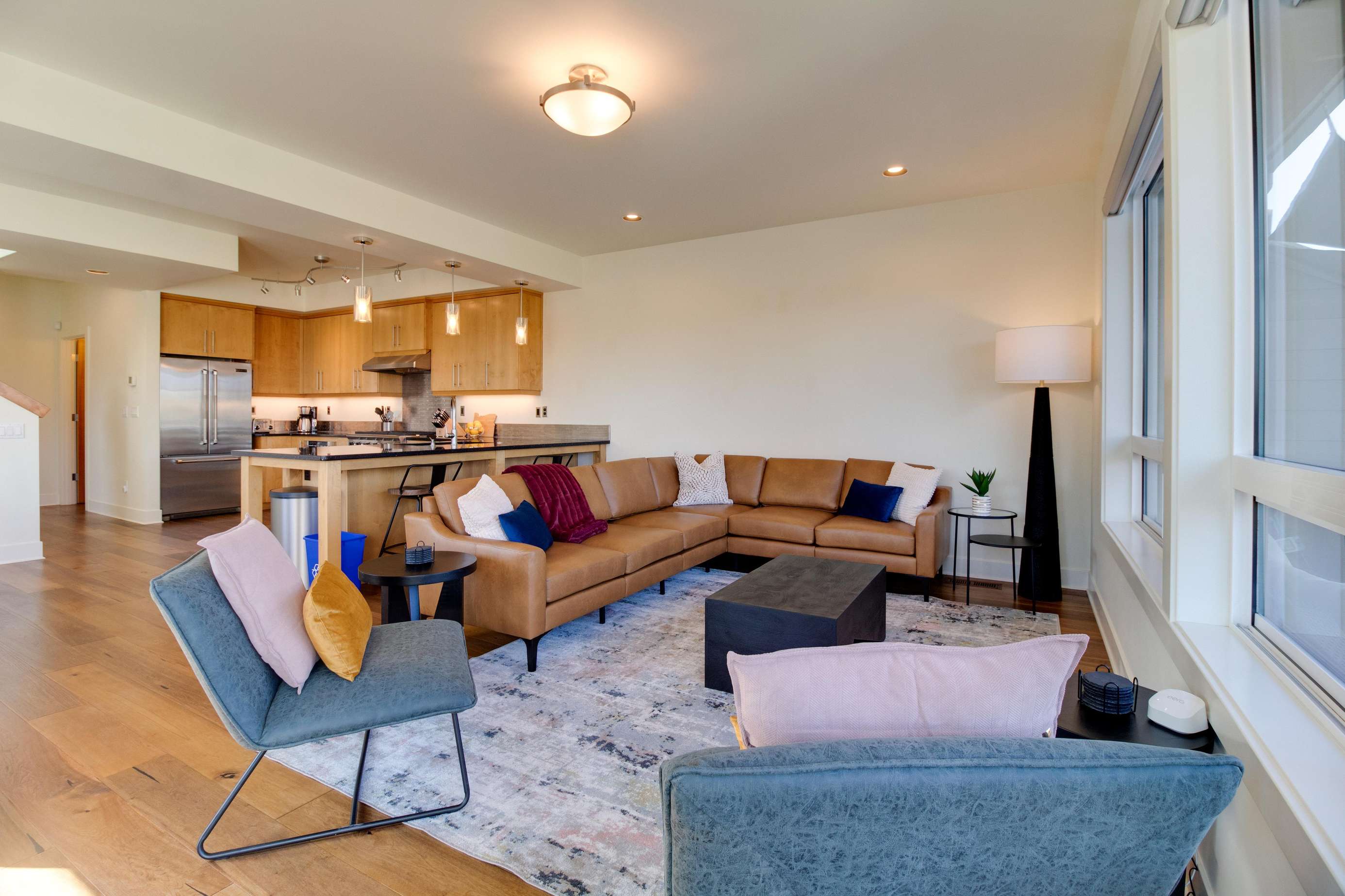 This home has 3 bedrooms (king, king, king) and family room with a kid's bunk bed (twin over full). All beds feature crisp high thread count linens and European style bedding. Each king bedroom features an ensuite bathroom. All king bedrooms have new Beautyrest Silver mattresses (as of August 2024). This is a 3 level home and stairs are required to access all king bedrooms. This home sleeps 6 adults and 2 kids very comfortably.