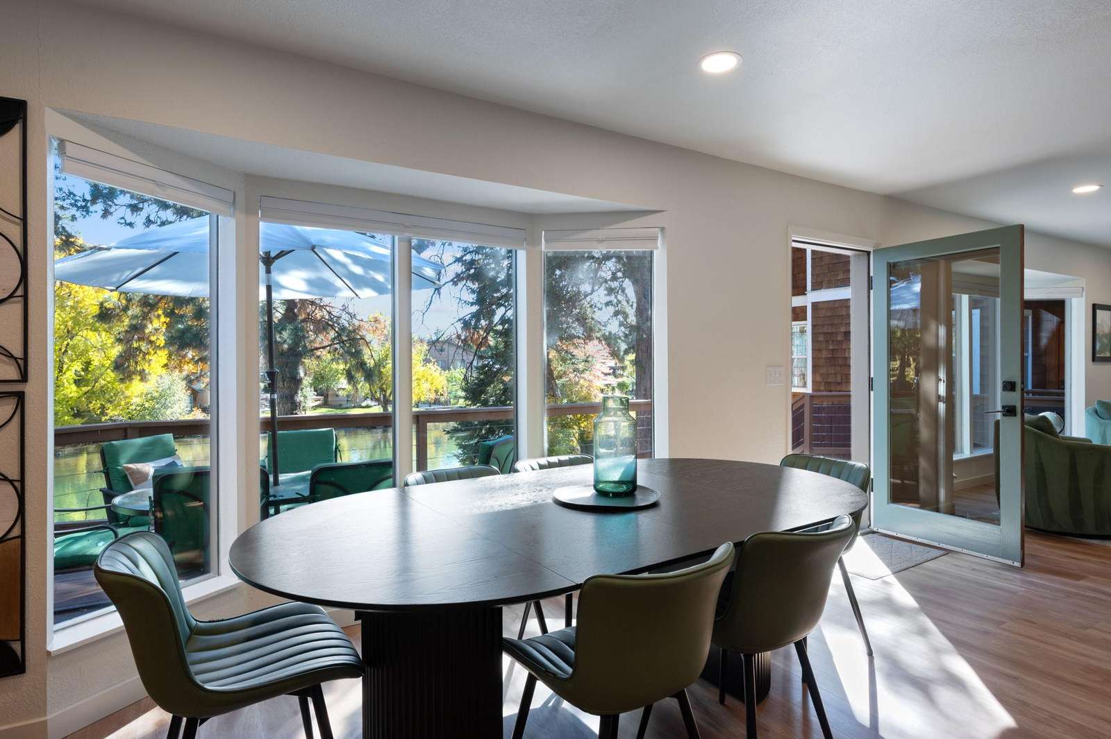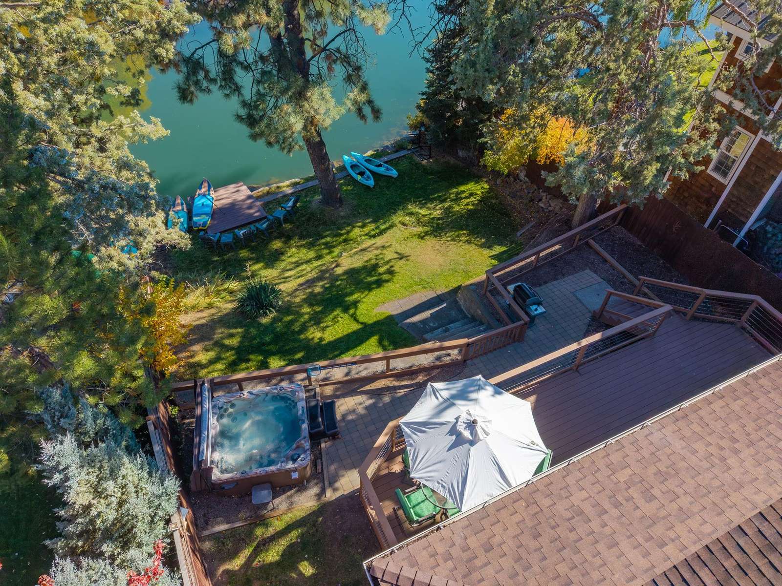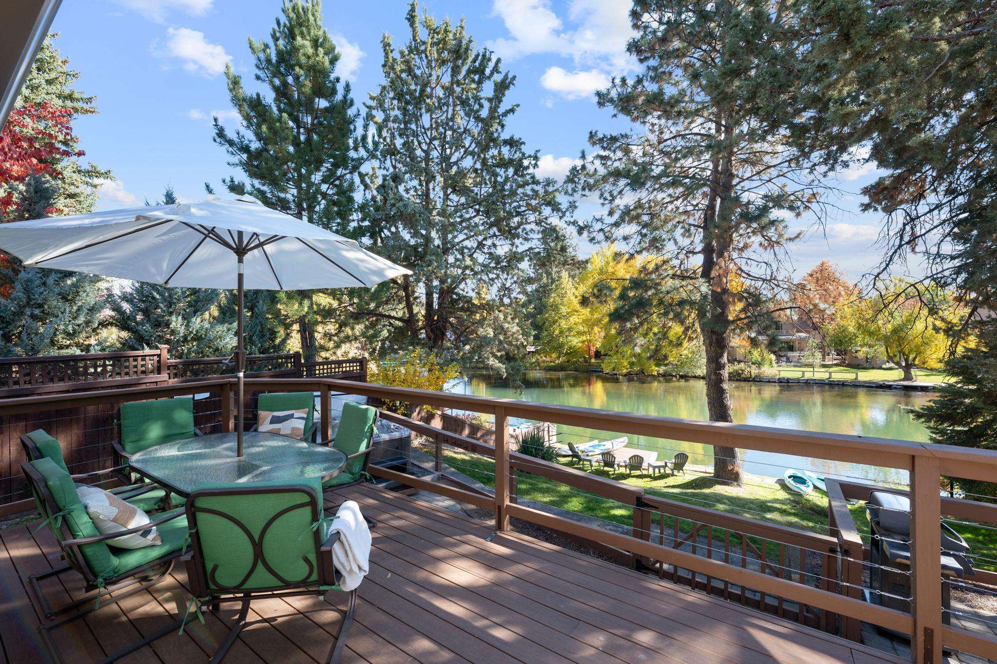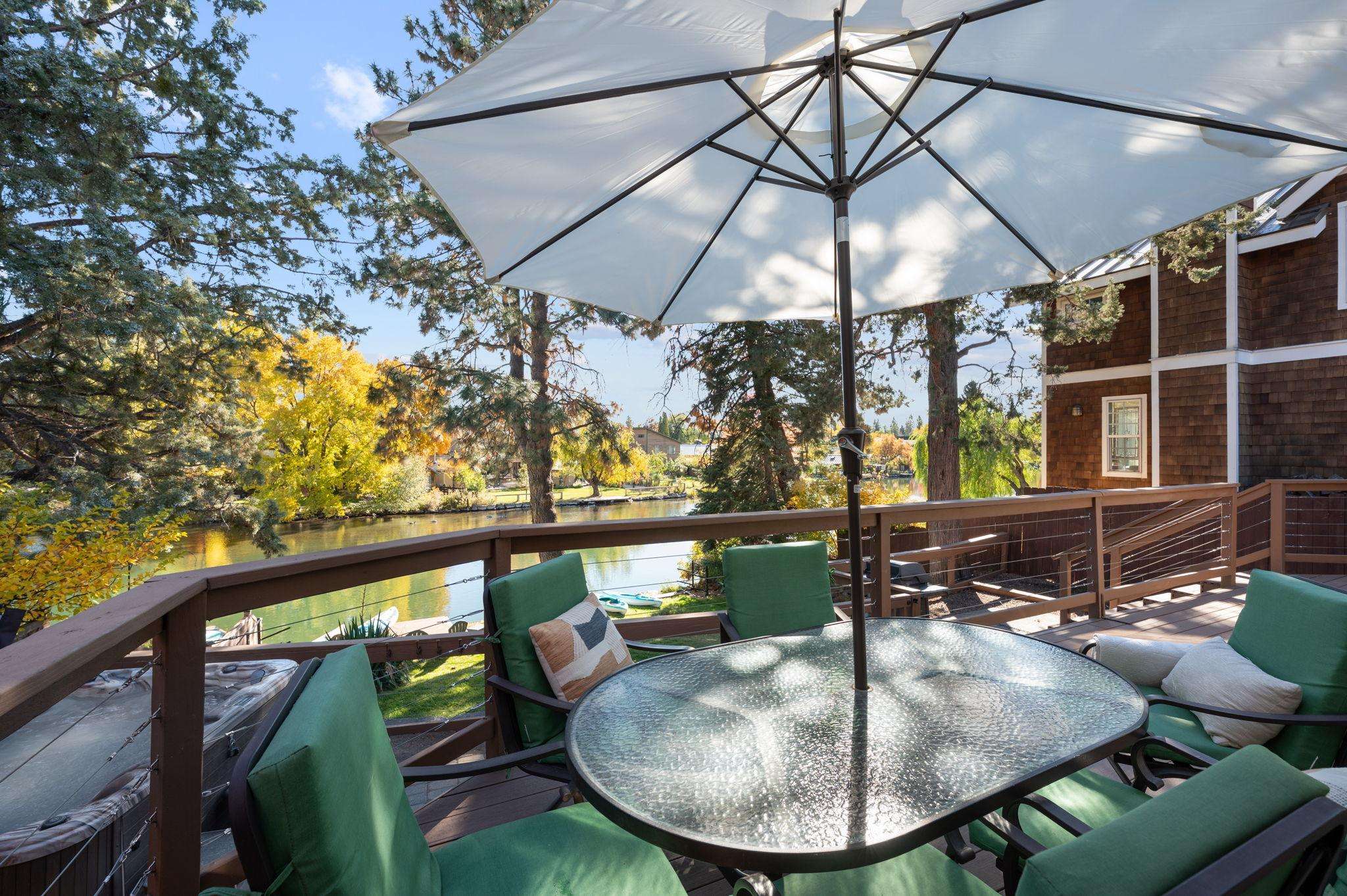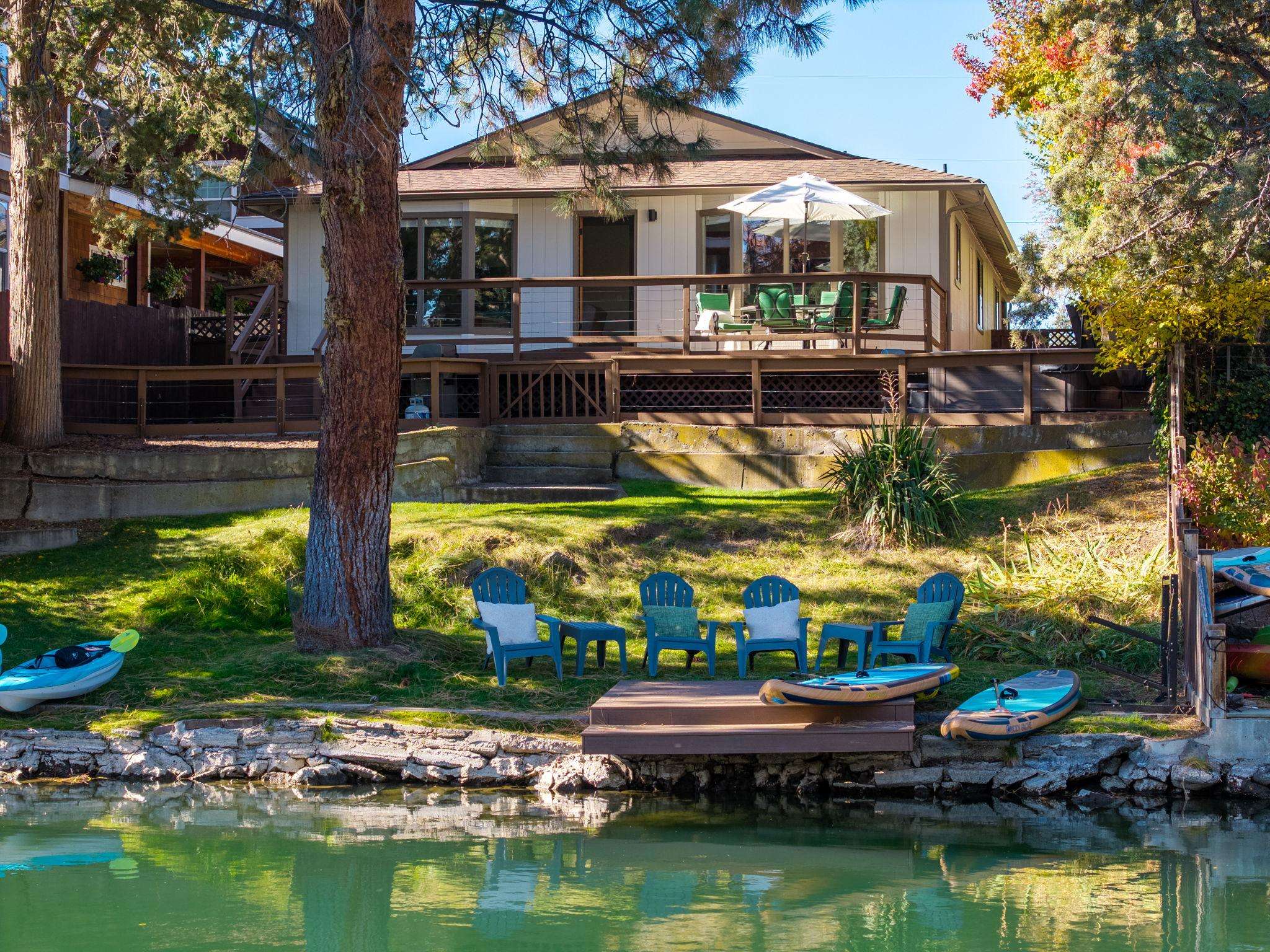 Riverfront home with modern amenities in the heart of westside Bend! Outdoor hot tub, free internet, HDTV, gas outdoor BBQ, riverfront dining. Walk a block to Galveston Ave for some of Bend's best restaurants, cafes and shops! Welcome to Bend!