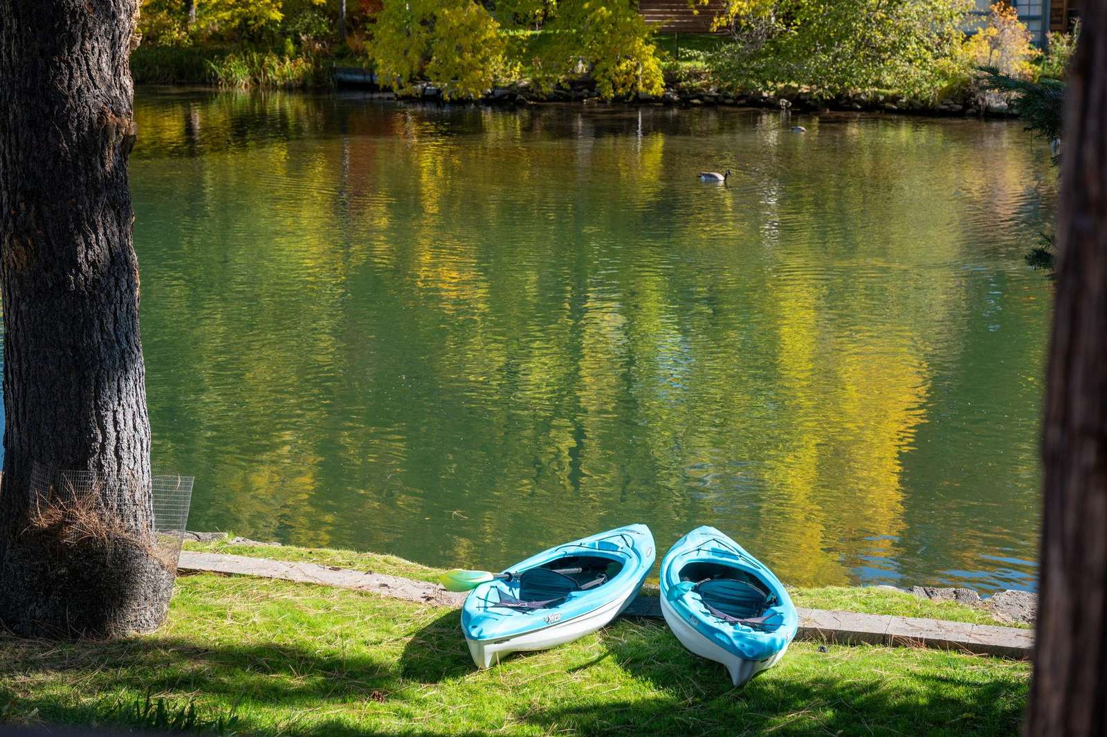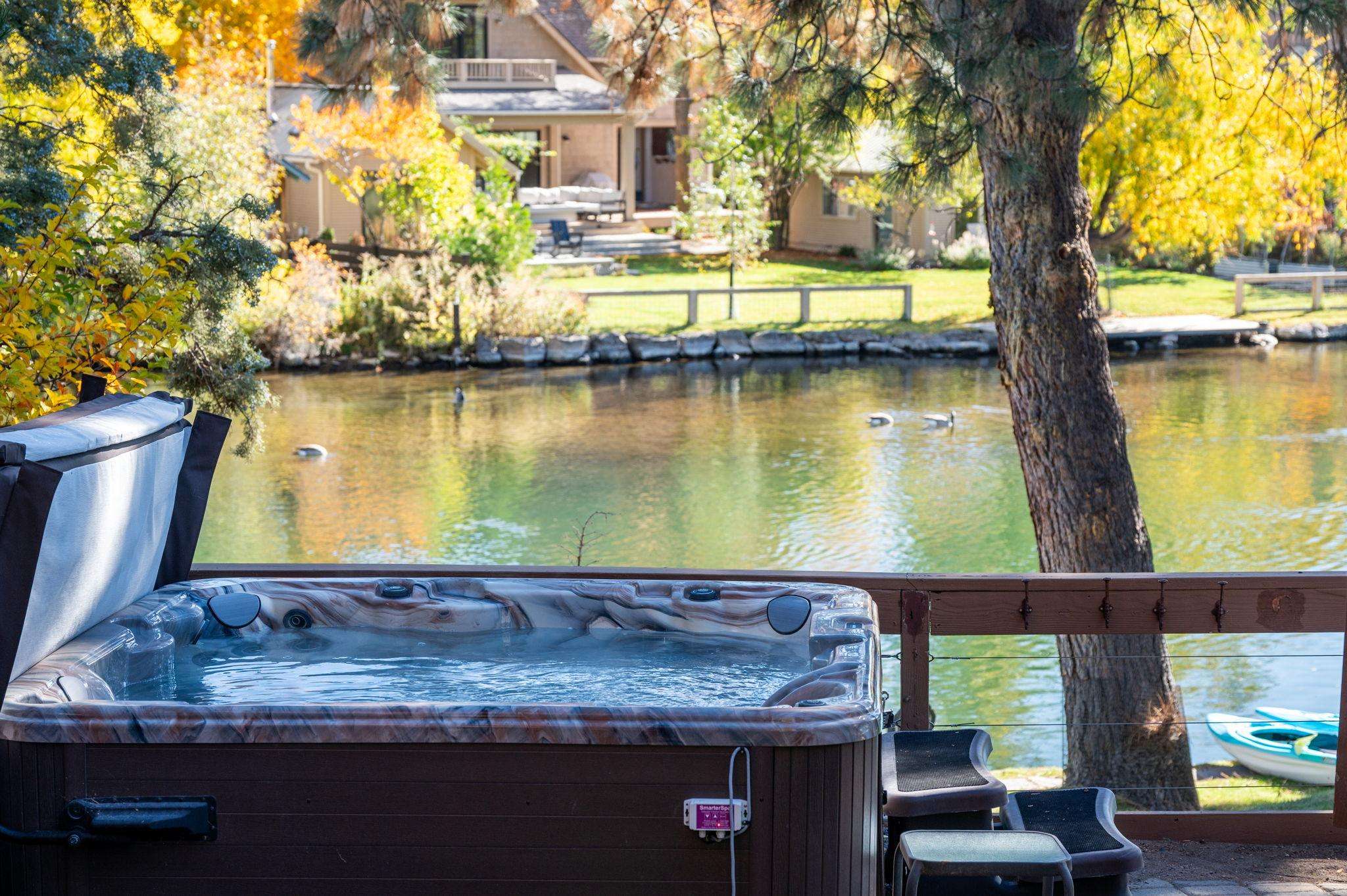 Outside you'll find an open and spacious yard. Ducks and geese love perching on the river wall under the mature trees on the river! The private salt water hot tub is perfect for a soak any time of year! We do ask you to be whisper quiet in the hot tub after 10pm. There is a locked garage for storing your gear year-round.