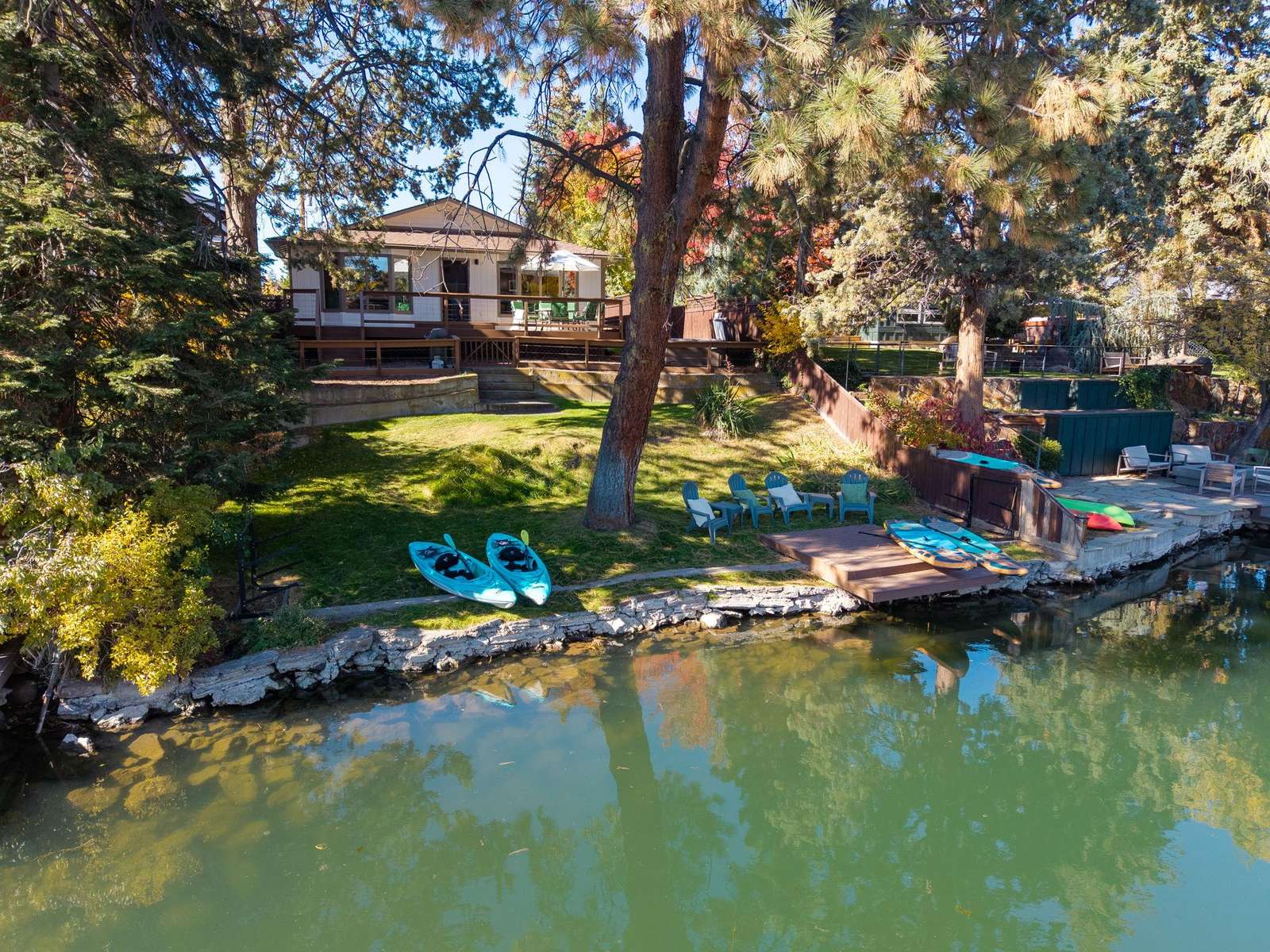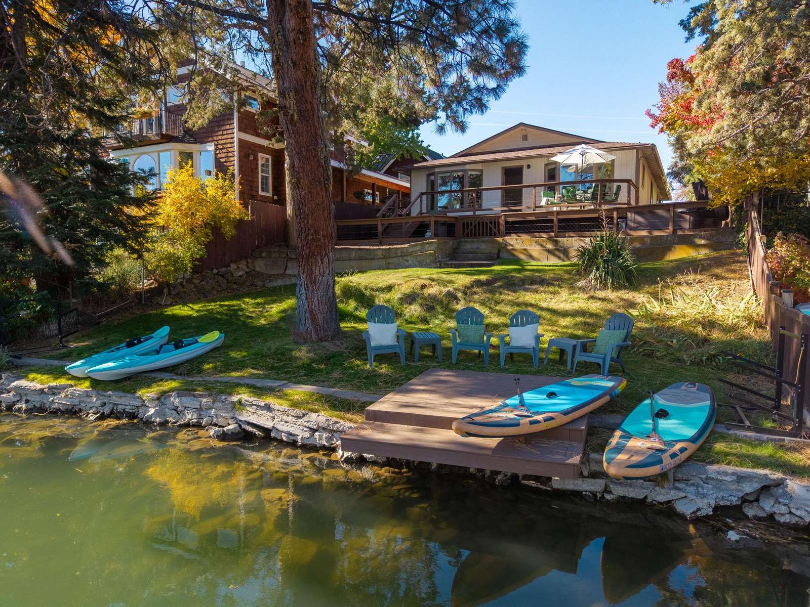 The RiverBend Bungalow is a sweet riverfront hide-away on the super popular westside of Bend. Enjoy your riverfront perch from the outdoor deck, hot tub or from the living room where you can watch the stand up paddle boarders and floaters drift by OR join them! Choose the RiverBend Bungalow for your next Bend getaway. Experience all that Bend and Central Oregon have to offer and enjoy this quality crafted vacation home in an unbeatable location.